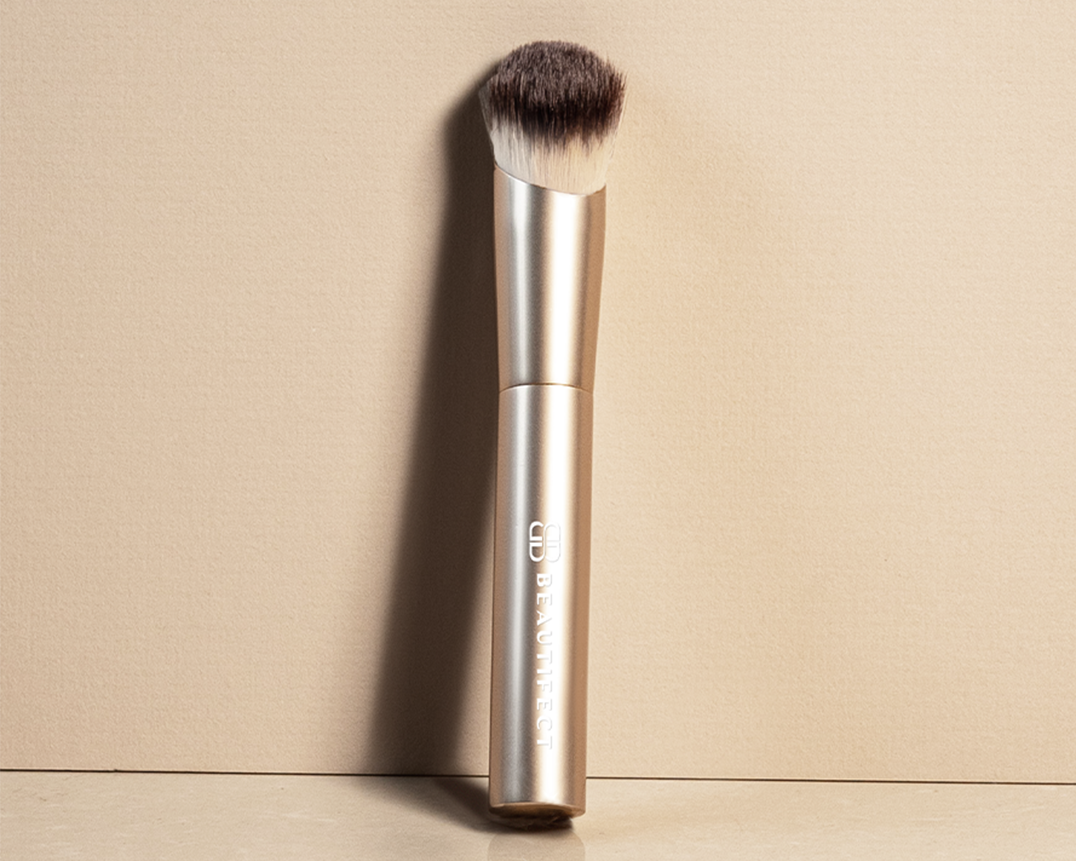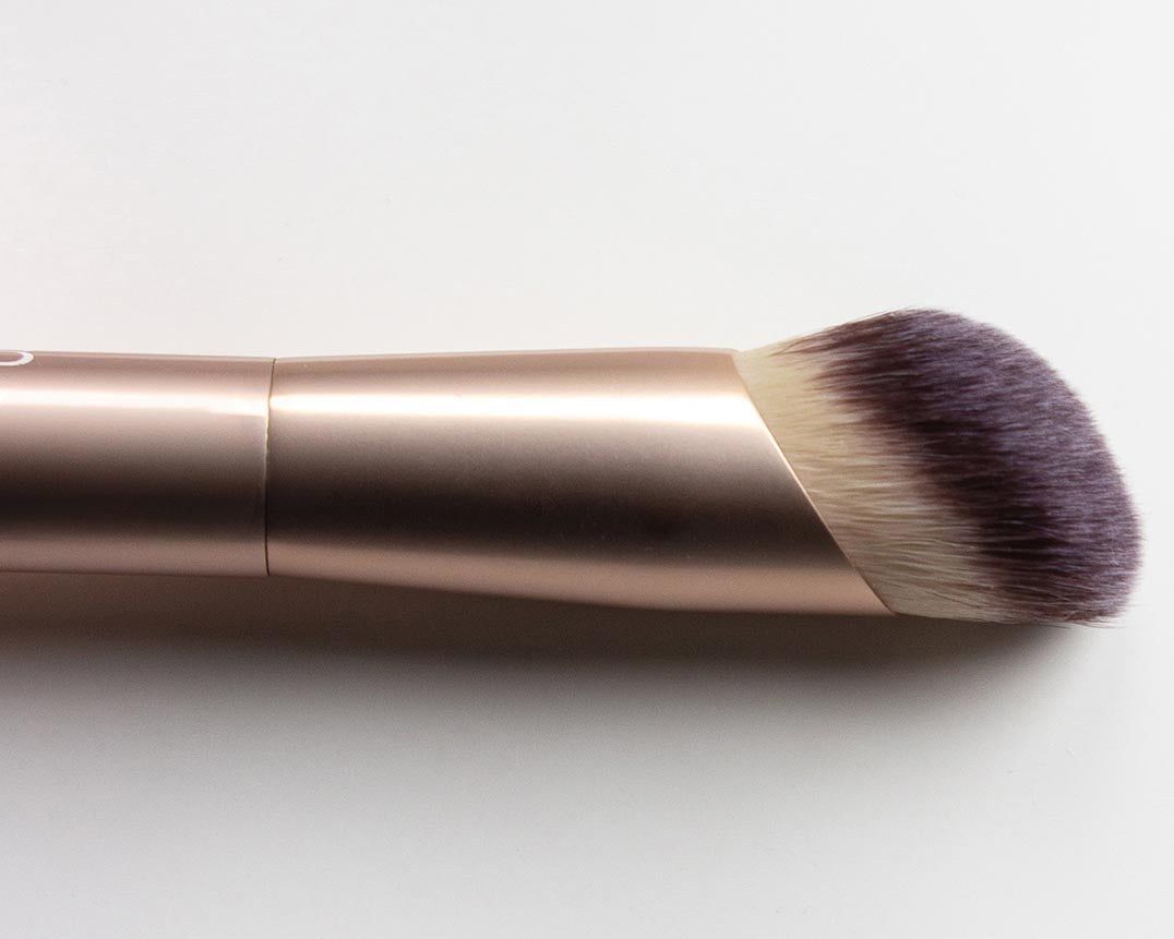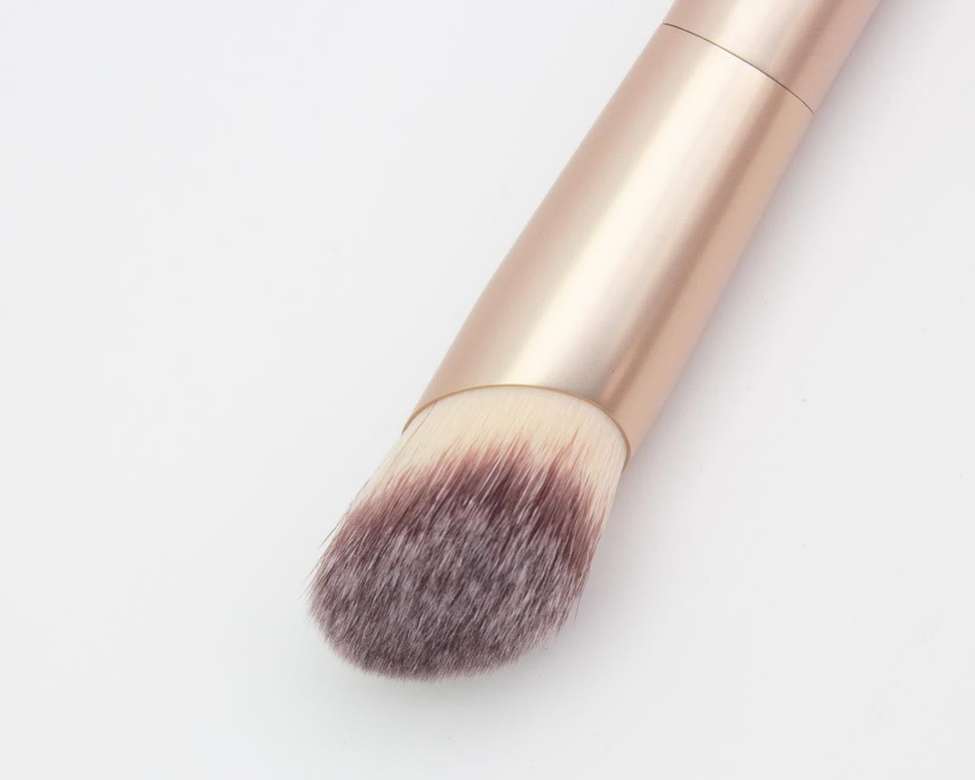 Crafted with premium synthetic fibers, this brush is built to blend and build foundation with ease, maintaining its shape use after use. It features a luxe matte gold finish. Its domed surface ensures smooth application, while the tapered tip reaches every contour of your face. You'll love the luxurious feel of this ultra-soft brush as it delivers a perfect blend every time. The ergonomically designed handle fits neatly into your hand and includes unique signature weighted ends to aid in control and applying the correct pressure for an airbrushed finish.