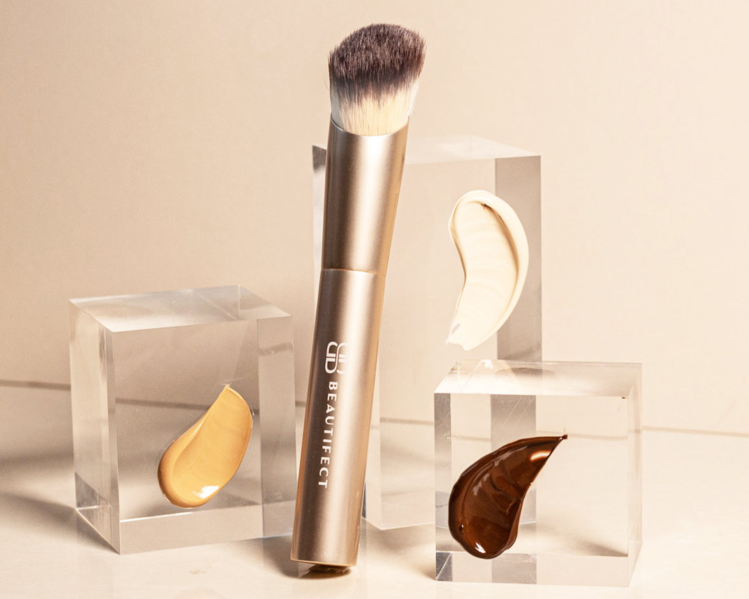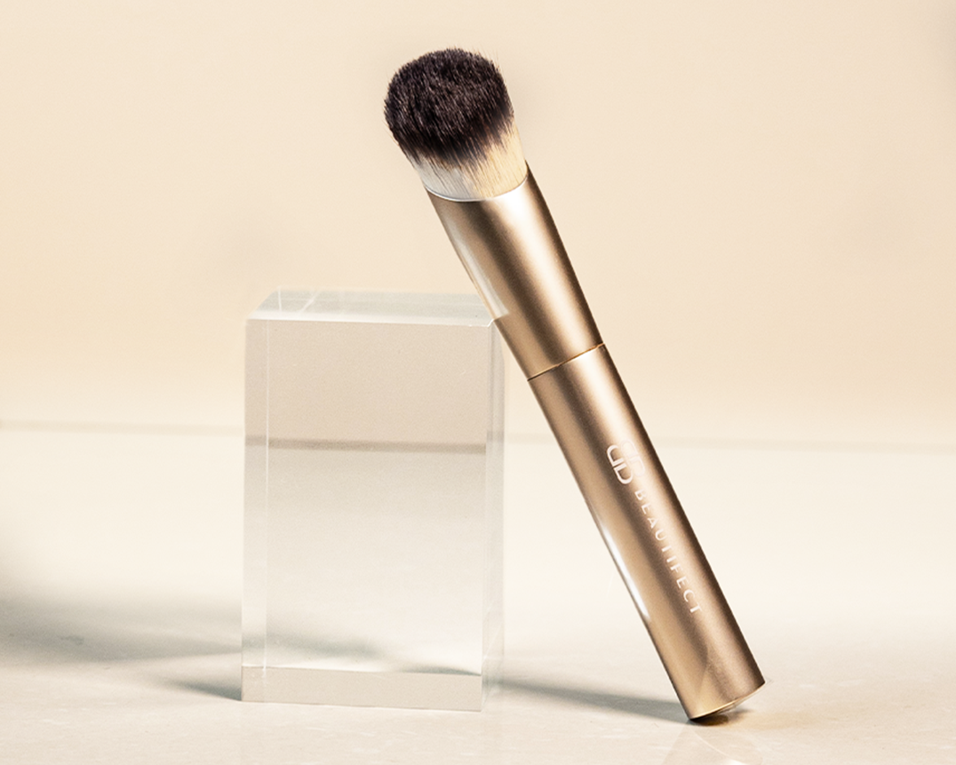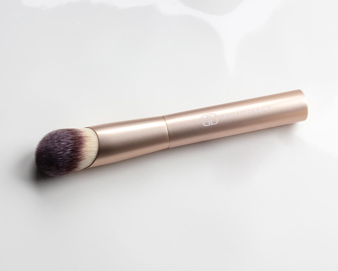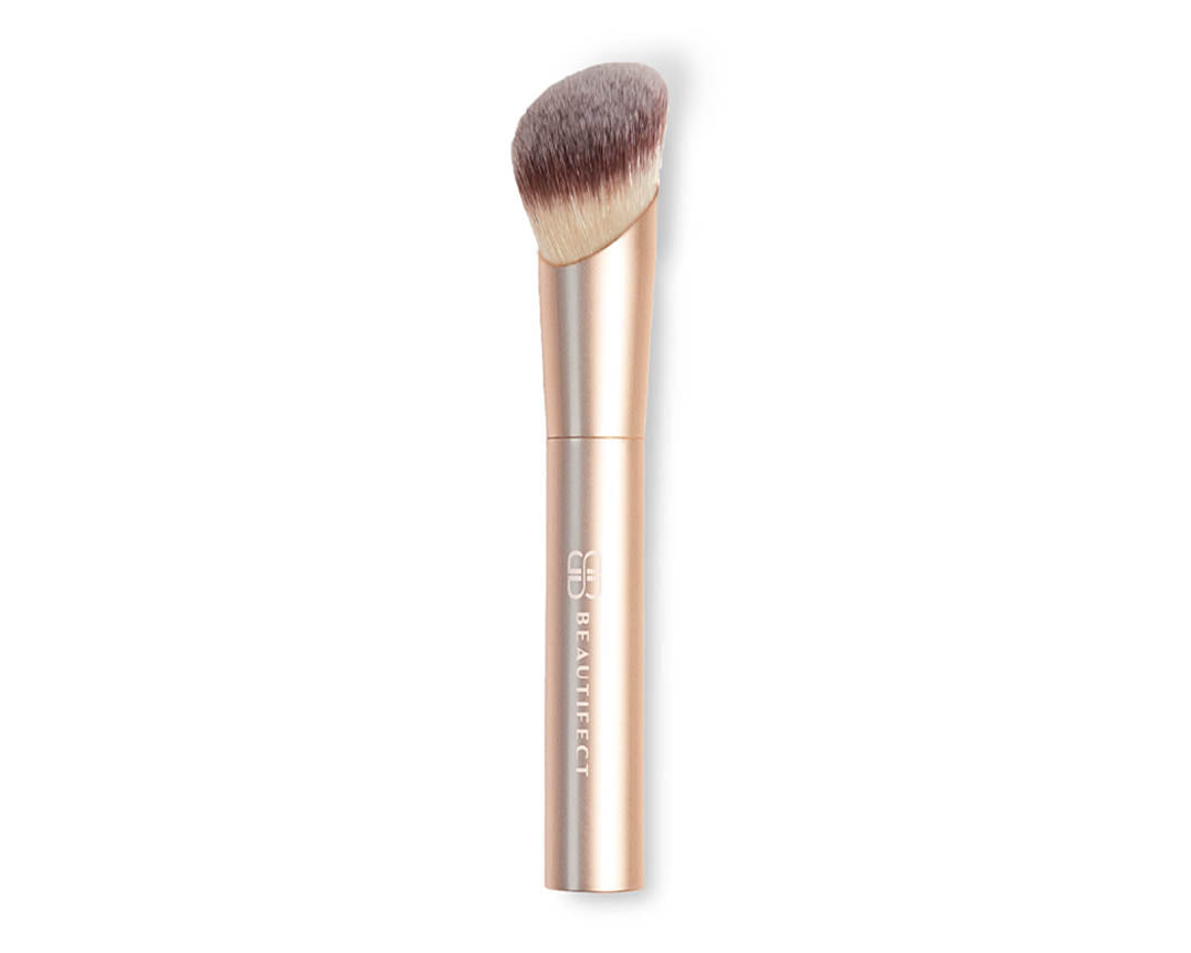 Crafted with premium synthetic fibers, this brush is built to blend and build foundation with ease, maintaining its shape use after use. It features a luxe matte gold finish. Its domed surface ensures smooth application, while the tapered tip reaches every contour of your face. You'll love the luxurious feel of this ultra-soft brush as it delivers a perfect blend every time. The ergonomically designed handle fits neatly into your hand and includes unique signature weighted ends to aid in control and applying the correct pressure for an airbrushed finish.